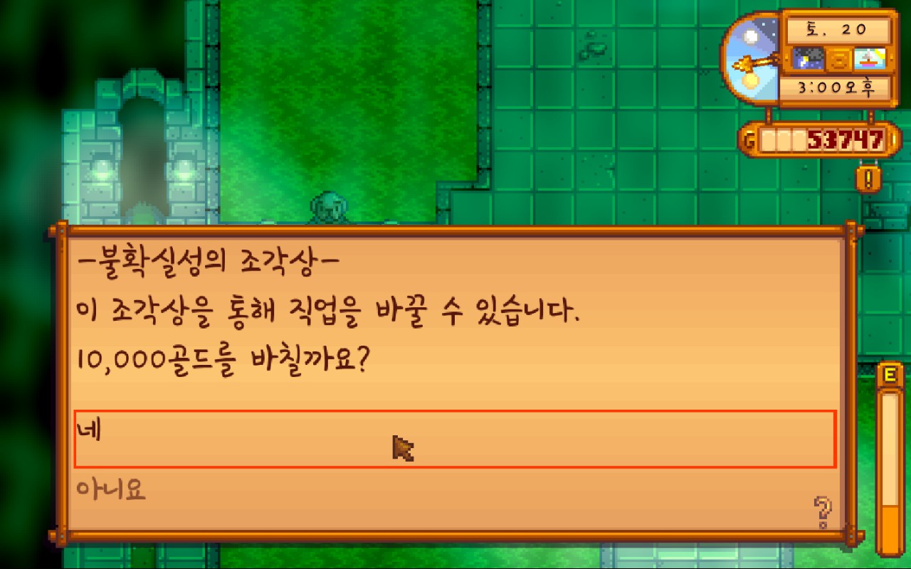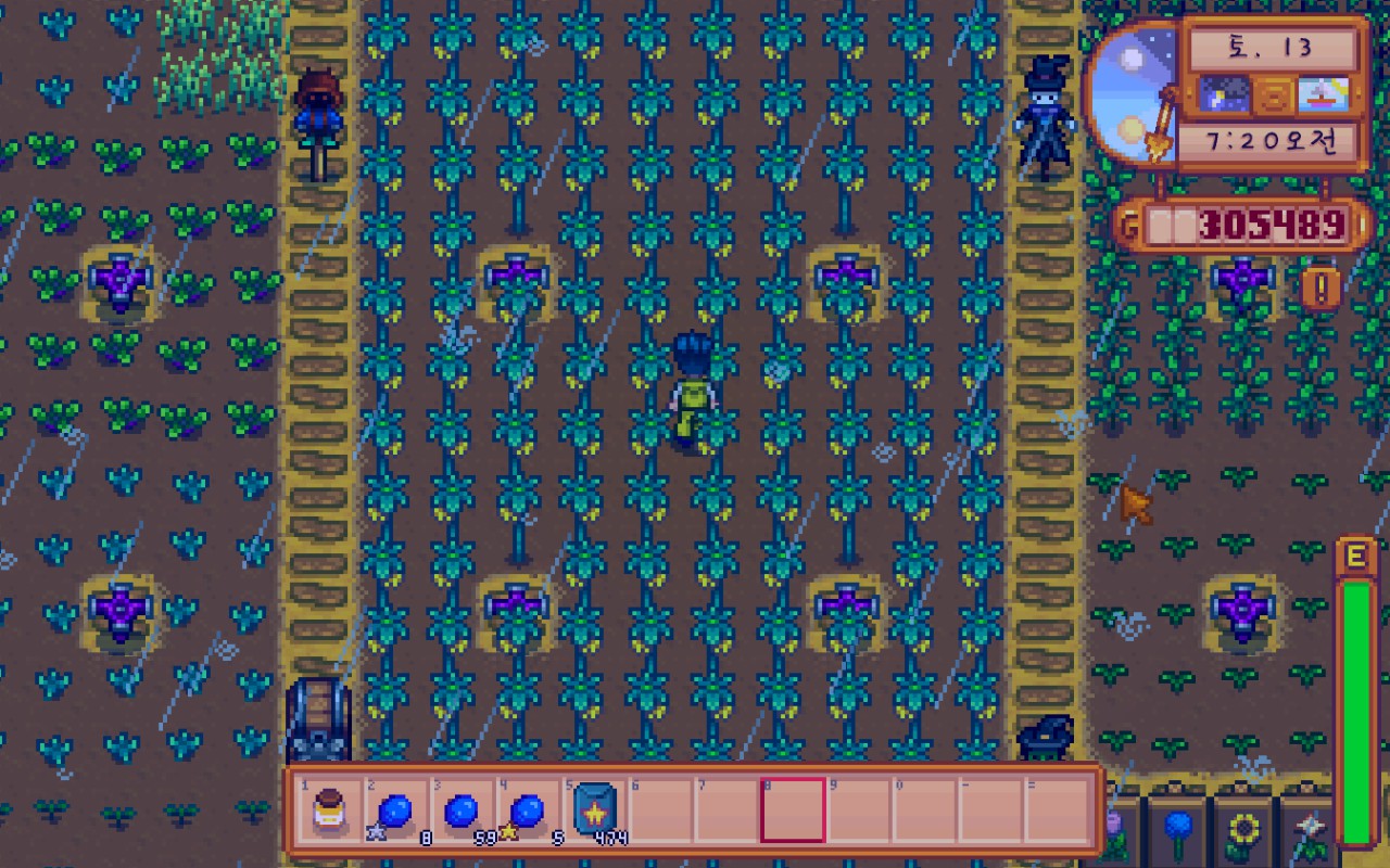 오랜만에 게임하니까 작물 날짜 계산을 안 하고 저기에 스타프루트 씨앗을 심어버렸다.................