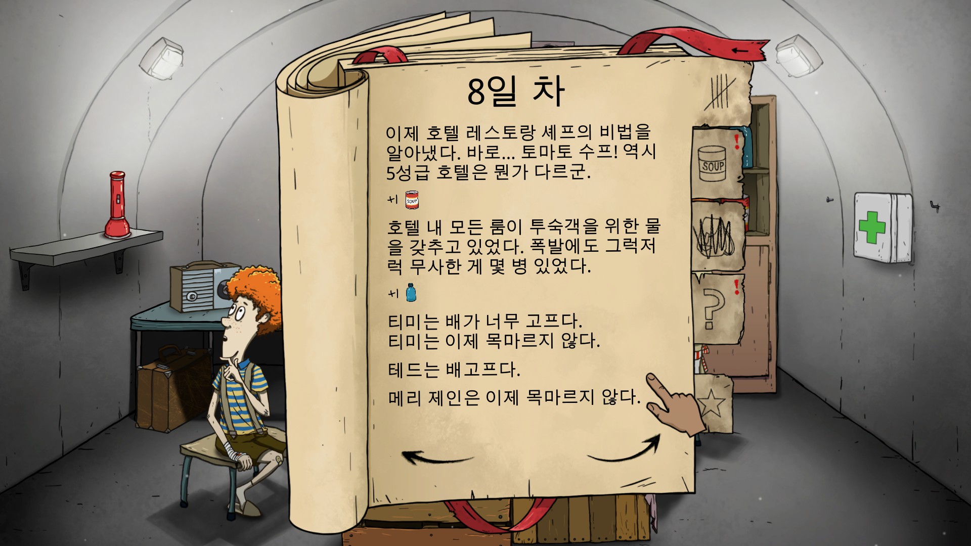 나름 열심히 주워서 방공호로 내려왔다